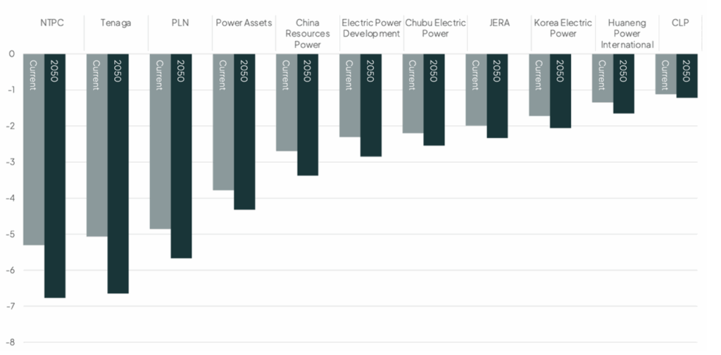 The companies with the worst annual average losses are India’s NTPC, Malaysia’s Tenaga and Indonesia’s PLN.