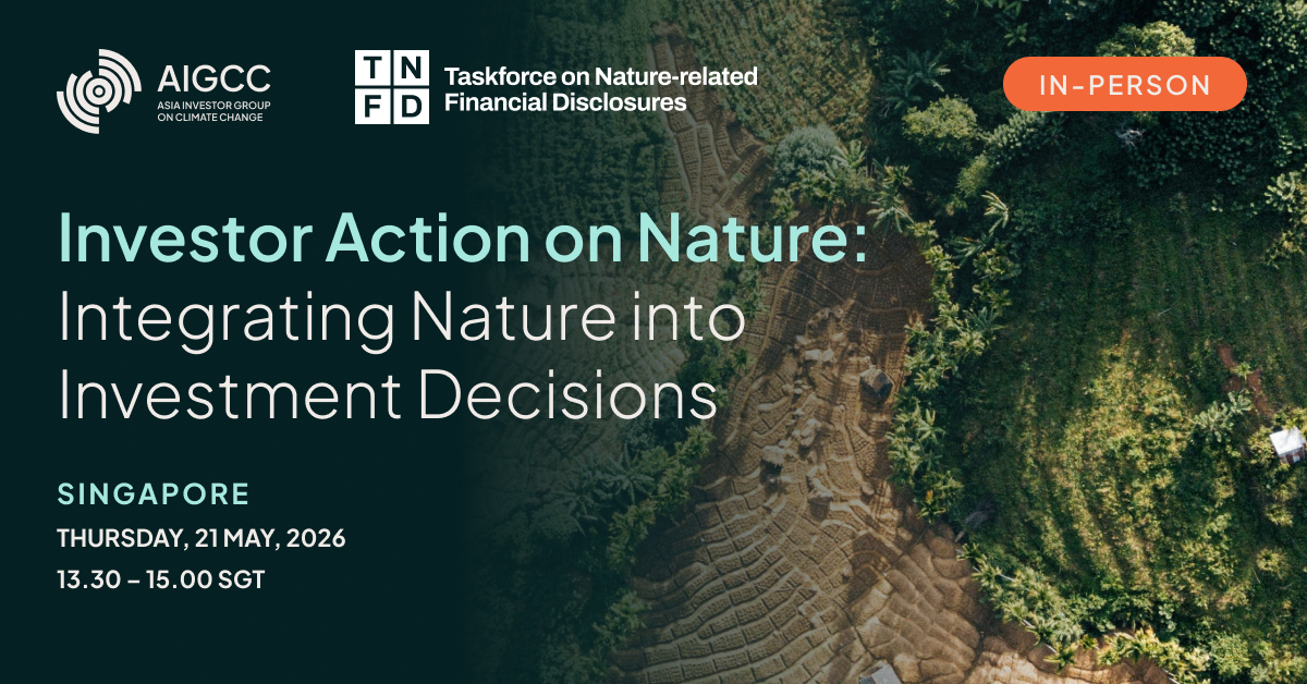 The Asia Investor Group on Climate Change (AIGCC) and the Taskforce on Nature-related Financial Disclosures (TNFD) jointly invite you to an event exploring how asset owners and asset managers are integrating nature into their investment approaches,