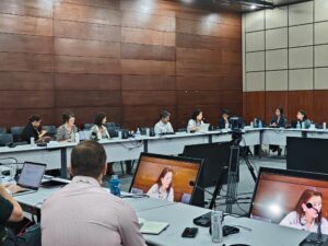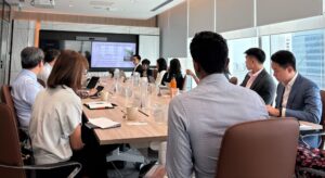 Director of Policy Anjali Viswamohanan briefing stakeholders on the Physical Risk and Resilience work programme at AIGCC’s policy roundtable on adaptation finance in Singapore in May 2025. Image by AIGCC.